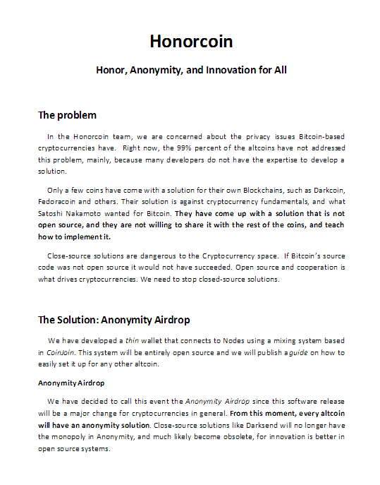 The team behind Honorcoin has announced via Reddit their plan to deliver anonymity once and for all. The project is titled Anonymity Airdrop, and promises to be a major change for all cryptocurrencies.